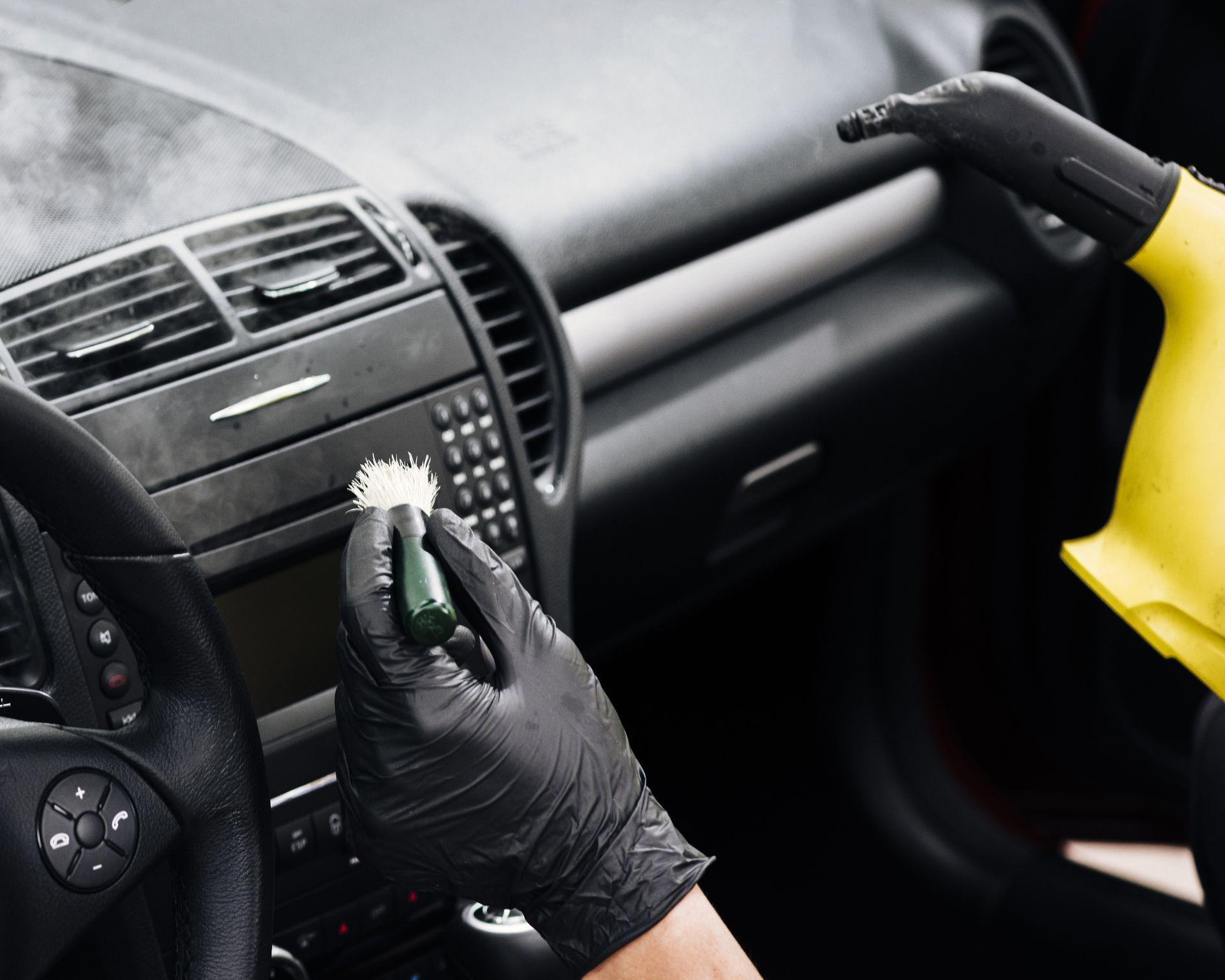 Limpieza detallada de salpicadero, volante, mandos, palancas y aspirado completo. Incluye limpieza de cristales y revividor de plásticos y alfombrillas.